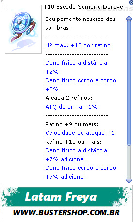 Tipo:Equip. Sombrio Posição:Escudo Peso:0Nv. mín.:99 Classes:Todas