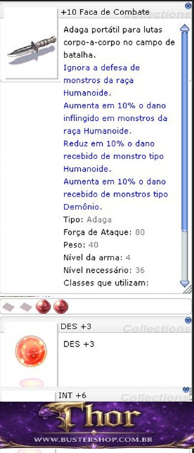 Classes que utilizam: Espadachim/ Mago/ Arqueiro/ Mercador/ Gatuno e as respectivas evoluções, Espiritualista e Ninja