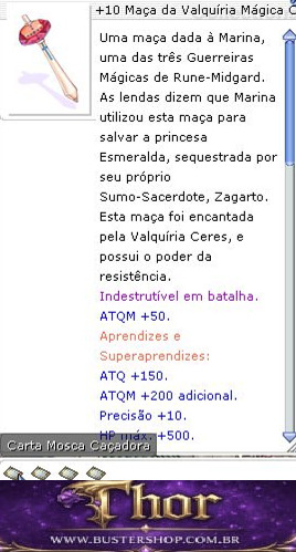 Uma maça dada à Marina, uma das três Guerreiras Mágicas de Rune-Midgard. As lendas dizem que Marina utilizou esta maça para salvar a princesa Esmeralda, sequestrada por seu próprio Sumo-Sacerdote, Zagarto. Esta maça foi encantada pela Valquíria Ceres, e possui o poder da resistência.