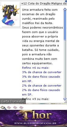 Conversão de HP e SP +1% adicional.