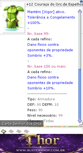 Uma couraça tão resistente quanto um Orc determinado. É feita com um material capaz de parar qualquer lâmina e conter as chamas de um dragão.