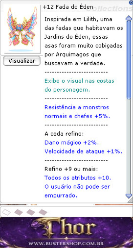 Inspirada em Lilith, uma das fadas que habitavam os Jardins do Éden, essas asas foram muito cobiçadas por Arquimagos que buscavam a verdade.