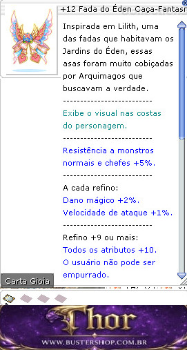 Inspirada em Lilith, uma das fadas que habitavam os Jardins do Éden, essas asas foram muito cobiçadas por Arquimagos que buscavam a verdade.