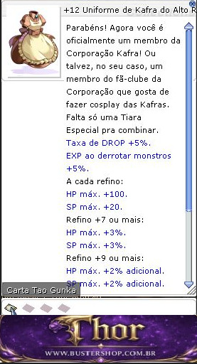 Parabéns! Agora você é oficialmente um membro da Corporação Kafra! Ou talvez, no seu caso, um membro do fã-clube da Corporação que gosta de fazer cosplay das Kafras. Falta só uma Tiara Especial pra combinar.