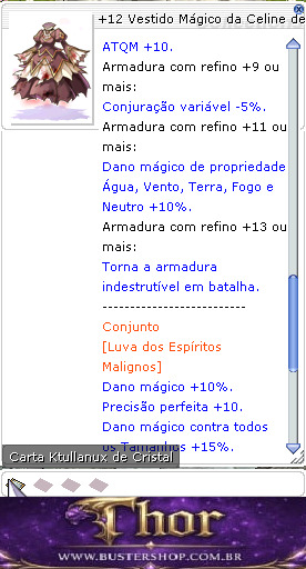Dano mágico de propriedade Água, Vento, Terra, Fogo e Neutro +10%.