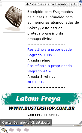 Esculpido com Fragmentos de Cinzas e infundido com as memórias abandonadas de Sakray, este escudo protege o usuário da ameaça divina.