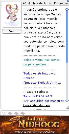 A cada 2 refinos: Taxa de DROP +1%. EXP adquirida por monstros +1%. --------------------------