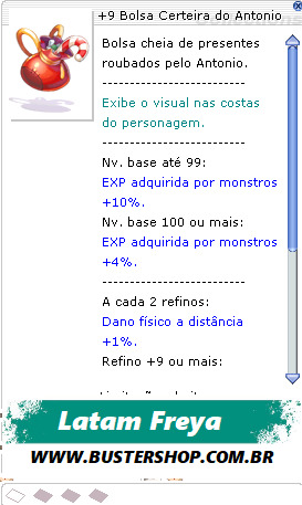 Uma bolsa que o Antonio carrega por aí quando ele quer acabar com seus inimigos à distância. É um item valioso para quem gosta de enfrentar os oponentes longe de si!
