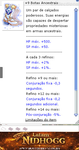 Tipo:Calçado DEF:15DEFM:0 Peso:60 Nível necessário:100 Classes:Todas