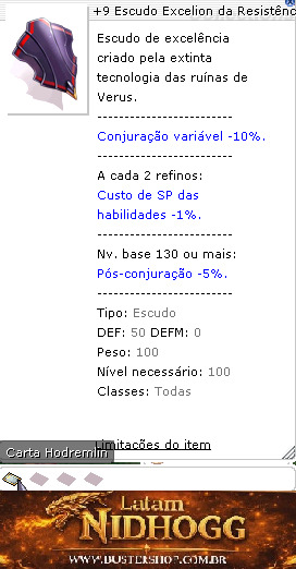 Tipo:Escudo DEF:50DEFM:0 Peso:100 Nível necessário:100 Classes:Todas