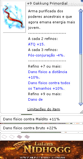 A cada 2 refinos: ATQ +15. A cada 3 refinos: Pós-conjuração -4%. --------------------------