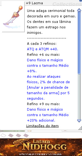 Uma adaga cerimonial toda decorada em ouro e gemas. Os dentes em sua lâmina fazem um estrago nos inimigos.
