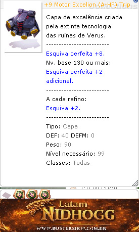 Tipo:Capa DEF:40DEFM:0 Peso:90 Nível necessário:99 Classes:Todas