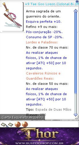 Ao realizar ataques físicos, 1% de chance de ativar [ATQ +50] por 10 segundos.