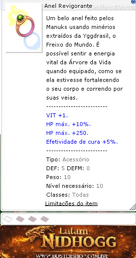------------------------- VIT +1. HP máx. +10%. HP máx. +250. Efetividade de cura +5%. -------------------------