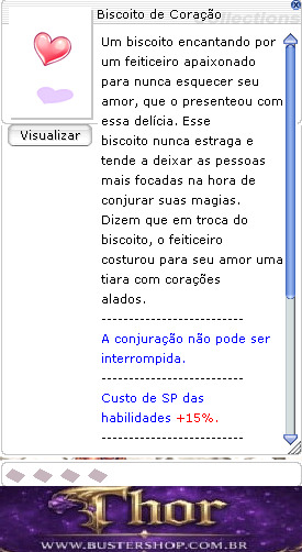 Um biscoito encantando por um feiticeiro apaixonado para nunca esquecer seu amor, que o presenteou com essa delícia. Esse biscoito nunca estraga e tende a deixar as pessoas mais focadas na hora de conjurar suas magias. Dizem que em troca do biscoito, o feiticeiro costurou para seu amor uma tiara com corações alados.