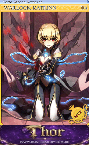 Nv. base 175 ou mais: Todos os atributos +10 adicional. -------------------------- Conjunto [Carta Alma de Kathryne] Ao realizar ataques mágicos: 3% de chance de se transformar em Kathryne Keyron por 6 segundos. -------------------------- Durante a transformação: ATQM +100. --------------------------
