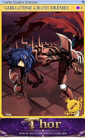Nv. base 175 ou mais: Todos os atributos +10 adicional. ------------------------- Conjunto [Carta Alma de Eremes] Ao realizar ataques físicos: 3% de chance de se transformar em Eremes Guile por 6 segundos. ------------------------- Durante a transformação: ATQ +100. -------------------------