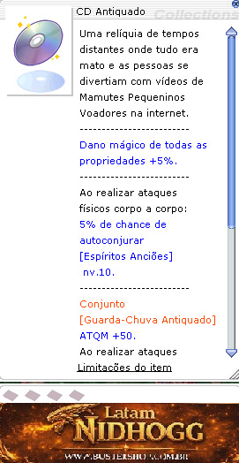 Tipo:Equip. para Cabeça Equipa em:Baixo DEF:0DEFM:0 Peso:20 Nível necessário:10 Classes:Todas