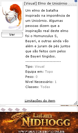 Tipo:Visual Equipa em:Topo Peso:0 Nível Necessário:1 Classes:Todas