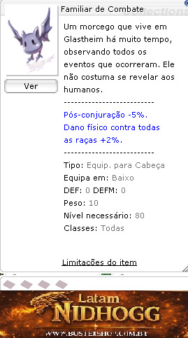 Tudo começou quando um sombrio Caçador da família Belo Monte, chamado Ricardo, resolveu que ia dedicar sua vida à caçar os seres da noite. Para isso dar certo, no lugar de treinar um falcão, ele escolheu treinar um Familiar, já que só iria se aventurar à noite. A ideia parece ter dado certo, já que hoje em dia é comum as pessoas andarem com familiars de combate adestrados como o seu amiguinho aqui.