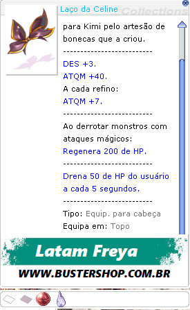 Tipo:Equip. para cabeça DEF:0DEFM:0 Peso:20 Nível necessário:1 Classes:Todas