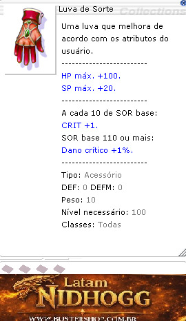 Tipo:Acessório DEF:0DEFM:0 Peso:10 Nível necessário:100 Classes:Todas