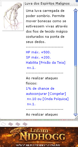 -------------------------- HP máx. +500. SP máx. +200. Habilita [Prisão da Teia] nv.1. --------------------------