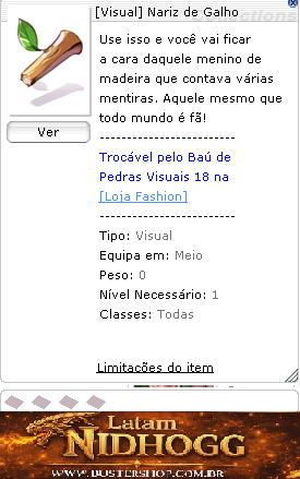 Tipo:Visual Equipa em:Meio Peso:0 Nível Necessário:1 Classes:Todas