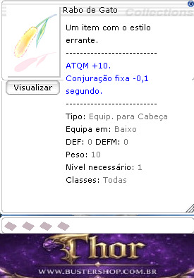 Um item com o estilo errante. ATQM +10. Tempo de conjuração fixa -0,1 segundo. Tipo: Equipamento para Cabeça Defesa: 0 Equipe em: Baixo Peso: 10 Nível necessário: 1 Classe: Todas as Classes