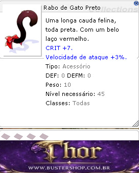 Se equipado junto com "Orelhas Felinas", concede +10% de dano com ataques críticos.