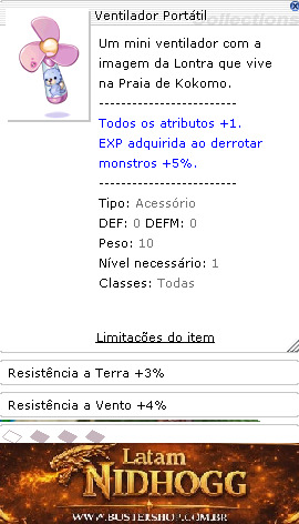 -------------------------- Todos os atributos +1. EXP adquirida ao derrotar monstros +5%. --------------------------