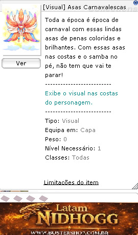 Tipo:Visual Equipa em:Capa Peso:0 Nível Necessário:1 Classes:Todas