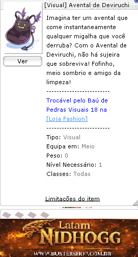 Tipo:Visual Equipa em:Meio Peso:0 Nível Necessário:1 Classes:Todas