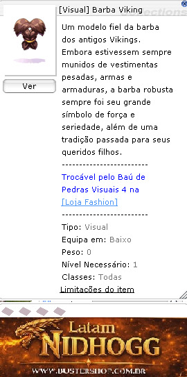 Tipo:Visual Equipa em:Baixo Peso:0 Nível Necessário:1 Classes:Todas