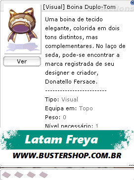Tipo:Visual Equipa em:Topo Peso:0 Nível necessário:1 Classes:Todas