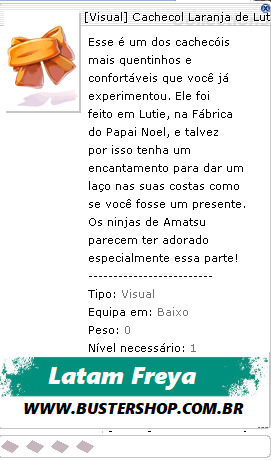 Tipo:Visual Equipa em:Baixo Peso:0 Nível necessário:1 Classes:Todas