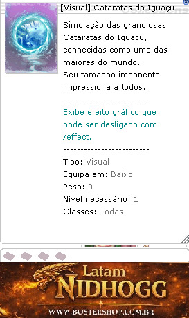 Tipo:Visual Equipa em:Baixo Peso:0 Nível necessário:1 Classes:Todas