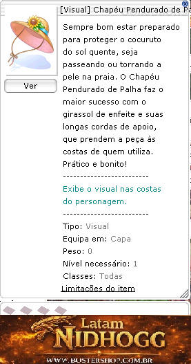 Tipo:Visual Equipa em:Capa Peso:0 Nível necessário:1 Classes:Todas