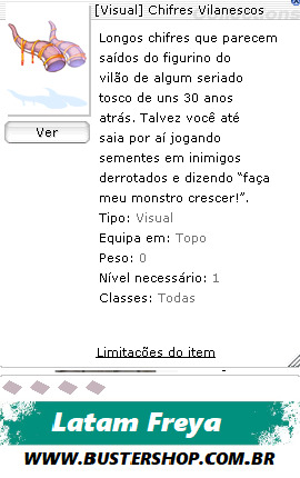 Tipo:Visual Equipa em:Topo Peso:0 Nível necessário:1 Classes:Todas