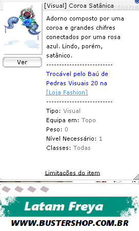 Tipo:Visual Equipa em:Topo Peso:0 Nível Necessário:1 Classes:Todas