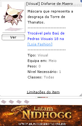 Tipo:Visual Equipa em:Meio Peso:0 Nível Necessário:1 Classes:Todas