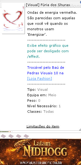 Tipo:Visual Equipa em:Meio Peso:0 Nível Necessário:1 Classes:Todas
