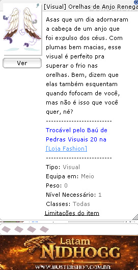 Tipo:Visual Equipa em:Meio Peso:0 Nível Necessário:1 Classes:Todas