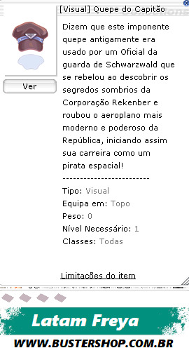 Tipo:Visual Equipa em:Topo Peso:0 Nível Necessário:1 Classes:Todas