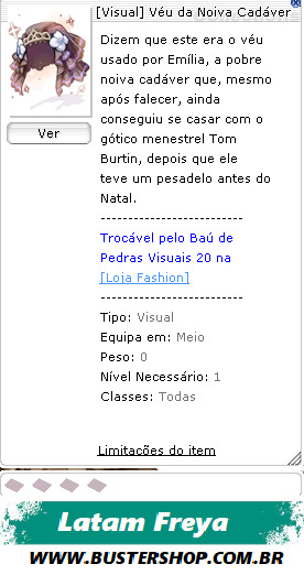 Tipo:Visual Equipa em:Meio Peso:0 Nível Necessário:1 Classes:Todas